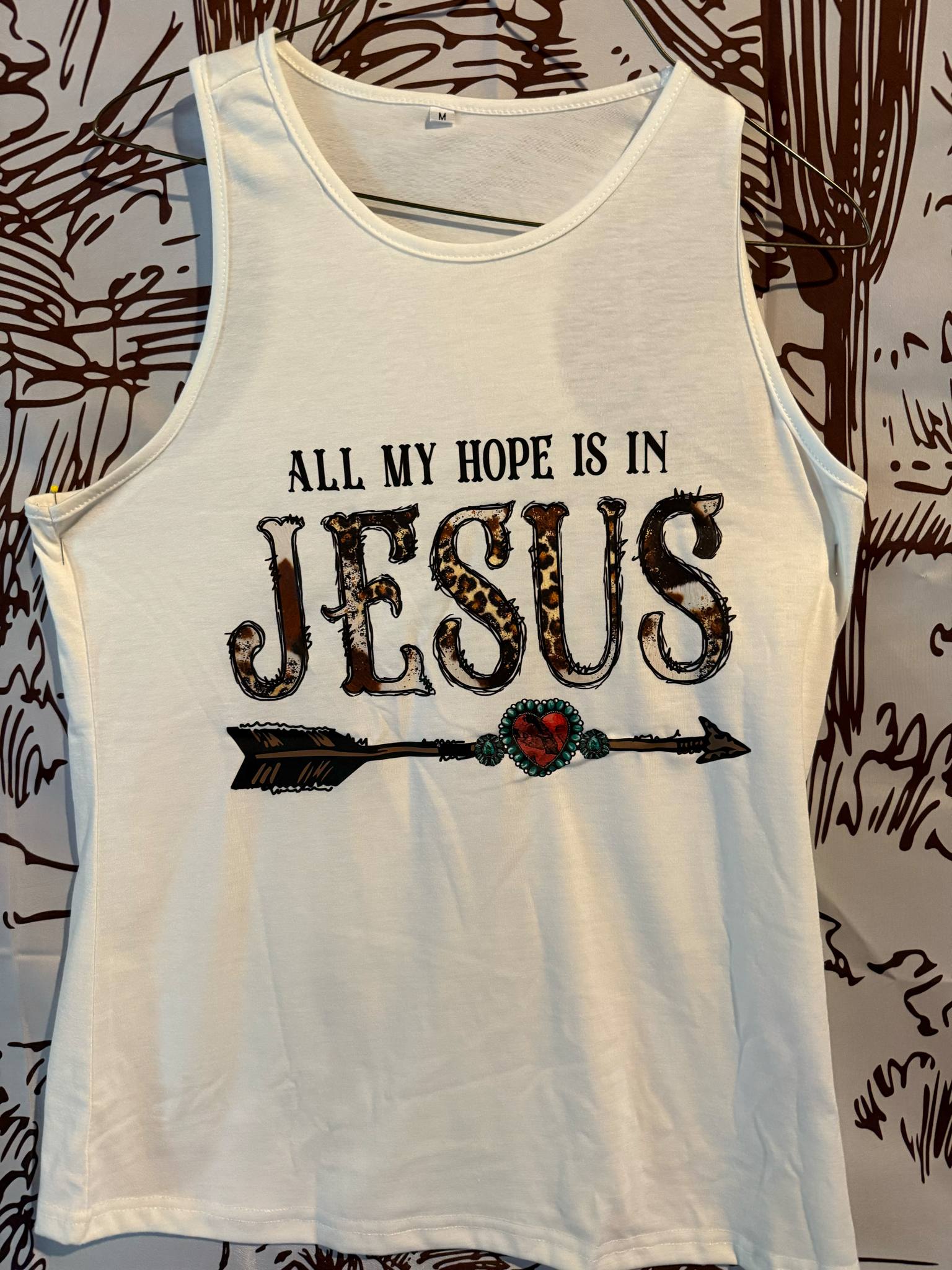 Rooted in faith and styled with a western twist, the All My Hope Is in Jesus Tank is the perfect blend of inspiration and Southern charm. Featuring bold rustic lettering with leopard print accents and a heart-centered arrow graphic, this top is made for the faithful and fearless.